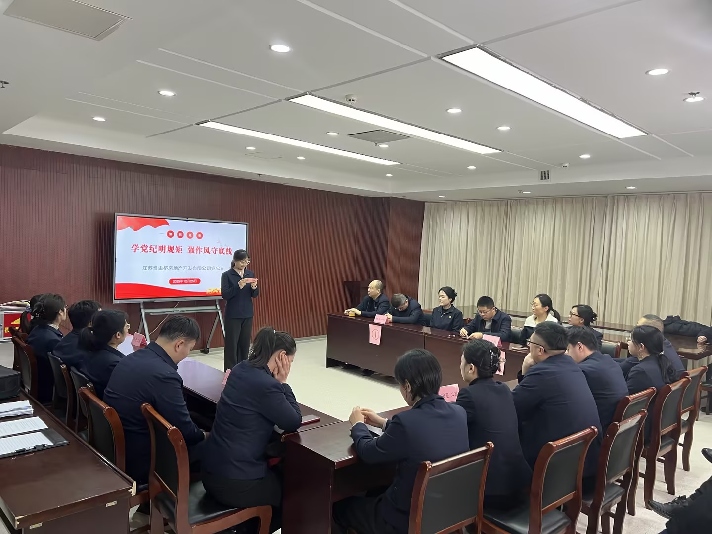 為深入貫徹全面從嚴(yán)治黨要求,推動(dòng)黨紀(jì)法規(guī)學(xué)習(xí)入腦入心,切實(shí)強(qiáng)化全體人員紀(jì)律意識(shí)與規(guī)矩意識(shí),12月25日下午,金橋房地產(chǎn)公司黨總支成功舉辦“學(xué)黨紀(jì)明規(guī)矩、強(qiáng)作風(fēng)守底線”知識(shí)競(jìng)賽。公司全體人員在以賽促學(xué)、以賽比學(xué)中營造了風(fēng)清氣正的干事氛圍,為公司高質(zhì)量發(fā)展注入廉潔力量。此次競(jìng)賽不僅是對(duì)公司黨紀(jì)法規(guī)學(xué)習(xí)成果的一次集中檢驗(yàn),更是一堂生動(dòng)鮮活的廉潔教育課,讓全體參賽人員在競(jìng)技比拼中深化了對(duì)黨紀(jì)條例的理解與把握,進(jìn)一步筑牢了拒腐防變的思想防線。大家紛紛表示,將以此次競(jìng)賽為契機(jī),把所學(xué)所悟轉(zhuǎn)化為履職盡責(zé)的行動(dòng)自覺,嚴(yán)格遵守黨紀(jì)黨規(guī)與公司各項(xiàng)規(guī)章制度,以更加堅(jiān)定的信念、更加務(wù)實(shí)的作風(fēng)投入到工作中,為公司持續(xù)健康發(fā)展貢獻(xiàn)力量。                                                                                                              &nb...