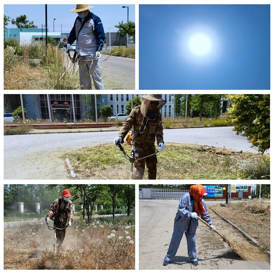 頭頂著炎炎烈日、忍受著蚊蟲叮咬,大伙使用打草機(jī)、鐮刀等工具,對雜草、高草進(jìn)行割除。走近細(xì)看,他們的臉上和手臂上都布滿汗珠,衣服早已濕透貼在身上。除草過程中,草渣紛紛濺到他們的身上,但這絲毫沒能影響他們工作的節(jié)奏。伴隨著機(jī)器的轟鳴聲,一片片規(guī)格一致、邊緣平直的綠草坪映入眼簾,淡淡的清香綠草味撲鼻而來,整個綠地充斥著整潔的氣息。
